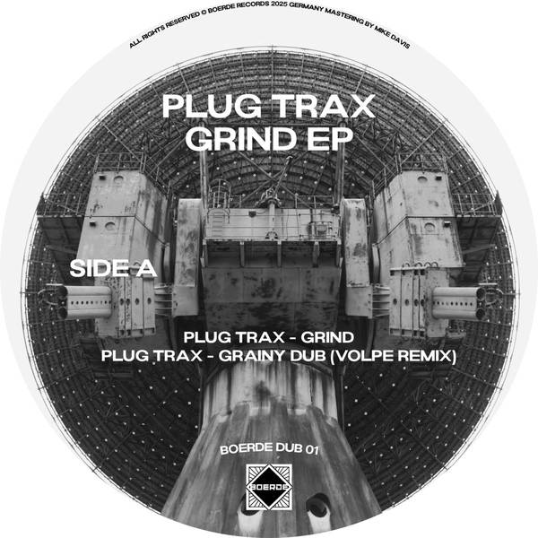Borede Records makes its bow with a first release from Plug Trax, who shows serious dub techno know-how. 'Grind' kicks off in tough, fast, textured fashion with drums that lean into the breeze and rattling chords. Volpe remixes with extra low-end heft and some tribal energy in the percussion, then the DBFB remix is more dark and more direct but with some irresistible swing. Grainy Dub shuts down with a more sparse vibe, static coating the pads and an eerie futurism - then the drums hit and off you go. A punchy, tasteful ride.
